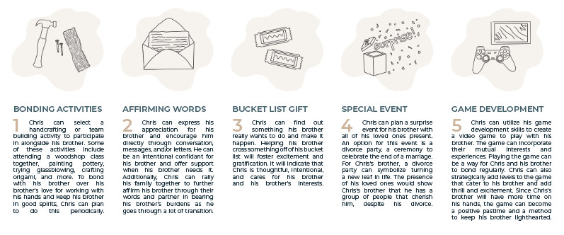 Overall, I enjoyed the Design Thinking Crash Course. At first, the course was somewhat intimidating. However, as Chris and I worked through each section, my interest and curiosity grew. Although I attended a class alongside Chris last semester, I learned more about him, his life, his loved ones, and who he is as a person through this 90-minute crash course. I also gained more understanding of the design thinking process during this time.